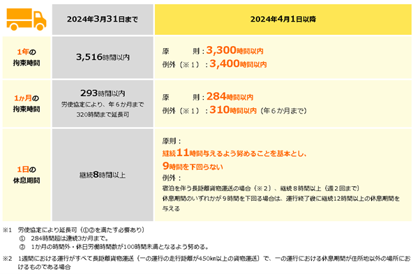 出典:自動車運転者の長時間労働改善に向けたポータルサイト『トラック運転者の改善基準告示』/厚生労働省『トラック運転者の改善基準告示が改正されています!』