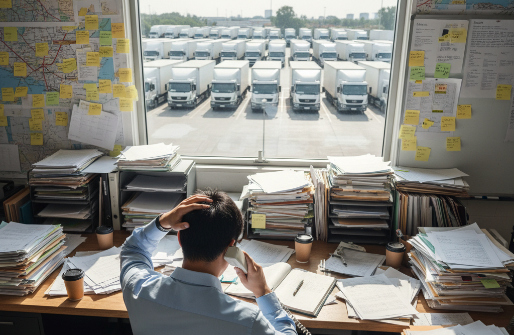 - ベテラン担当者の勘と経験則で配車が組まれ、属人化による技術継承リスクも高い。