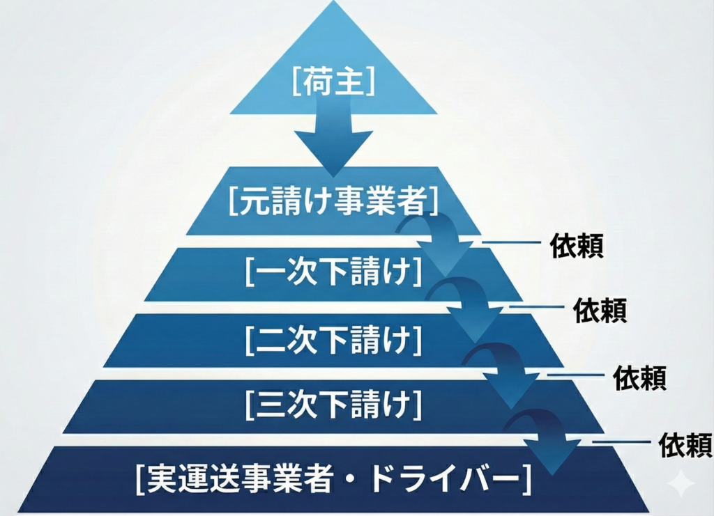 建設業界などでも見られる構造ですが、物流においては特にその階層が深く、複雑化しやすい傾向にあります。