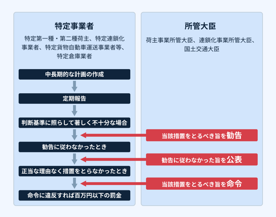 - ポイント: 2024年に成立した「改正物流2法」で新たに義務が強化されました。